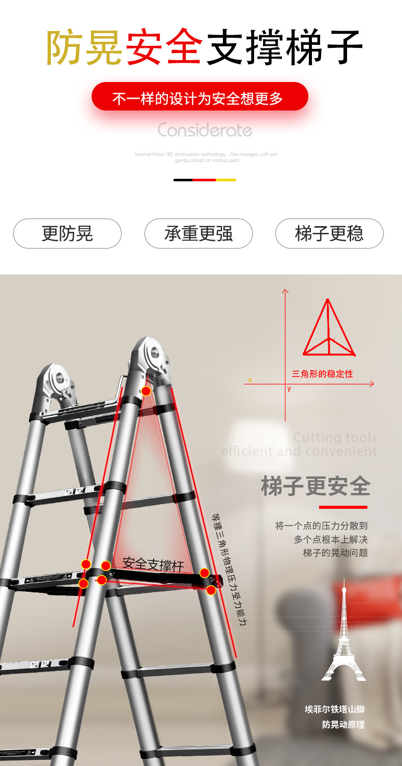 镁多力多功能工程升降梯子伸缩梯子人字梯铝合金折叠加厚家用楼梯